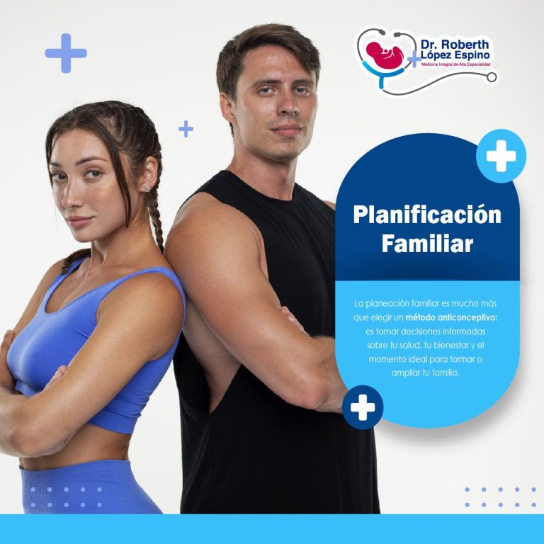 El Dr. Roberth López Espino proporciona asesoría en planificación familiar con métodos seguros y efectivos, como anticonceptivos orales, implantes o dispositivos intrauterinos, adaptados a su estilo de vida para prevenir o espaciar embarazos de manera óptima. Incluye evaluaciones detalladas y educación sobre opciones disponibles.