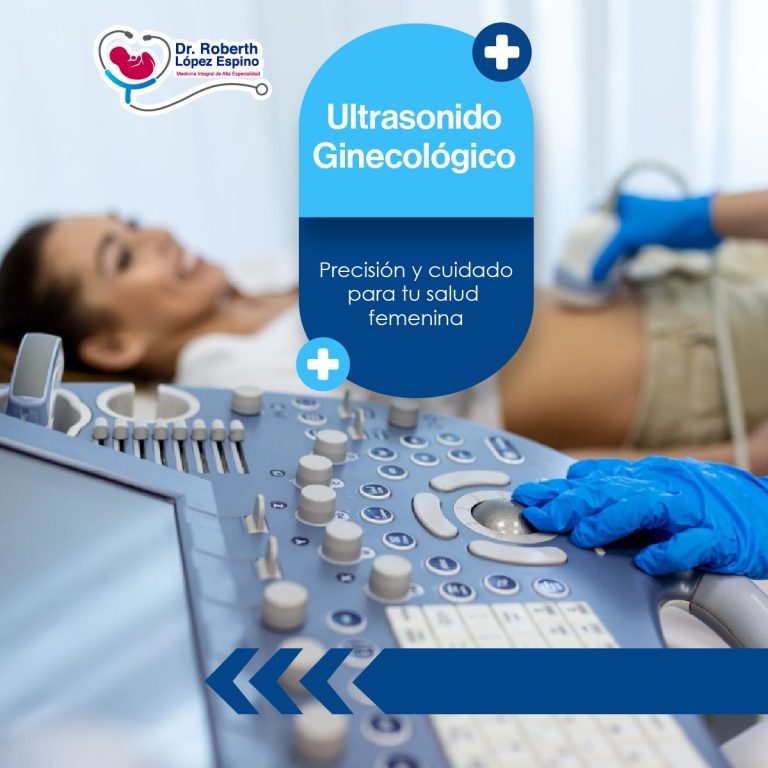 El Dr. Roberth López Espino ofrece ultrasonidos ginecológicos para visualizar el útero, ovarios y estructuras pélvicas, detectando condiciones como quistes o fibromas mediante un procedimiento no invasivo y cómodo.